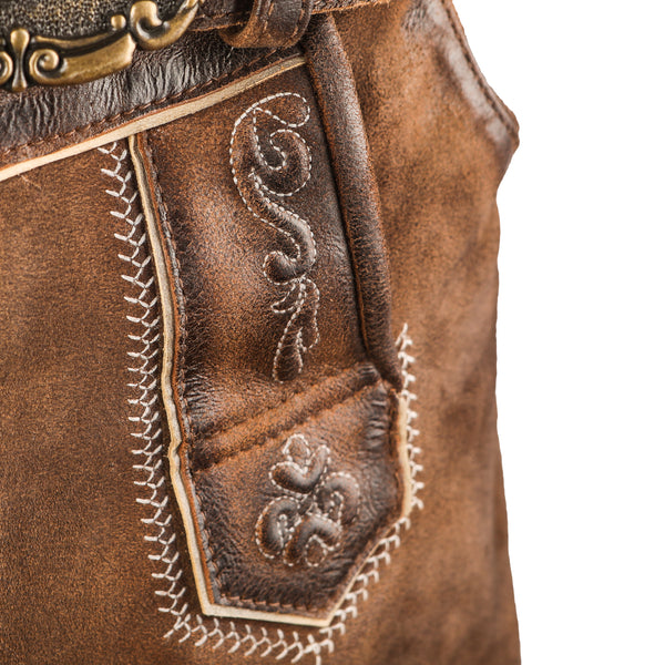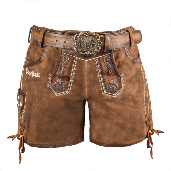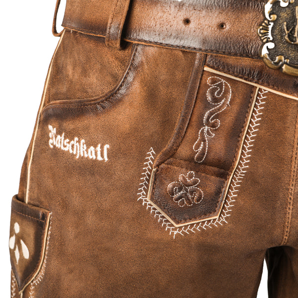 De eerste Hodalump leren broek gemaakt van comfortabel geitenleer. Er zijn momenteel 3 maten om uit te kiezen: 50, 52 en 54 inclusief riem. De lederhosen zijn voorzien van ons logo in een mooie naad en een groot Bavaria wapen. Artikelnummer: 7108