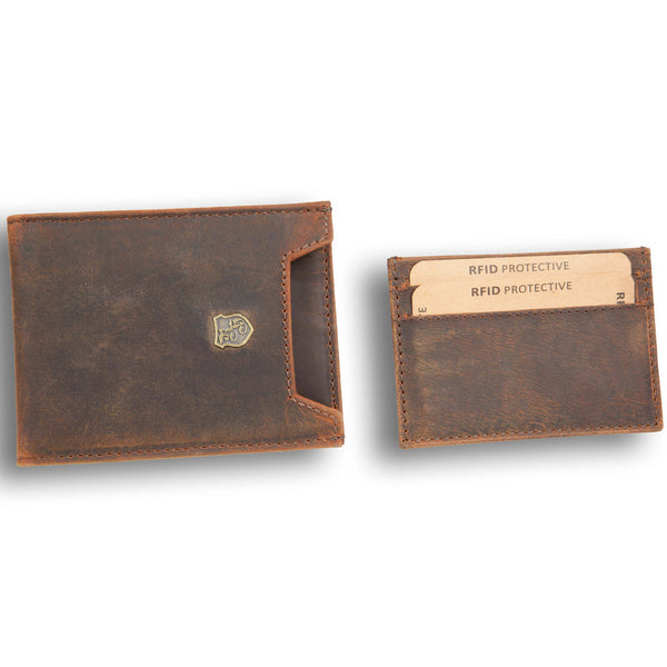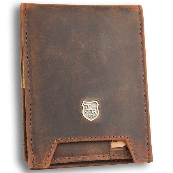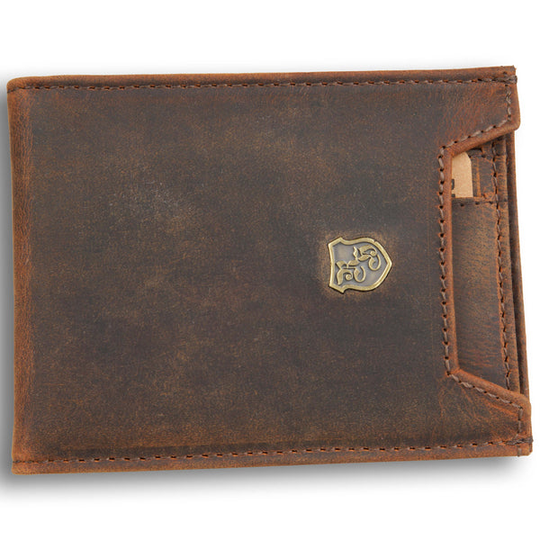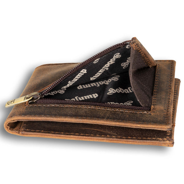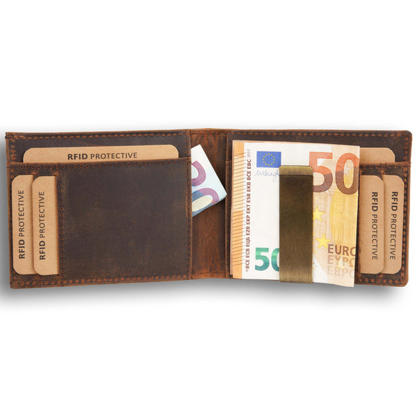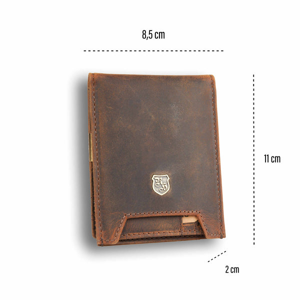 De portemonnee is gemaakt van aangenaam antislip vintage buffelleer. Het leer is natuurlijk, geolied (plantaardige olie) en geschuurd. Dit betekent dat de portemonnee na verloop van tijd donkerder wordt en een mooie patina-look krijgt.