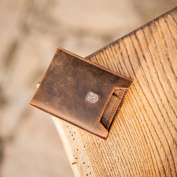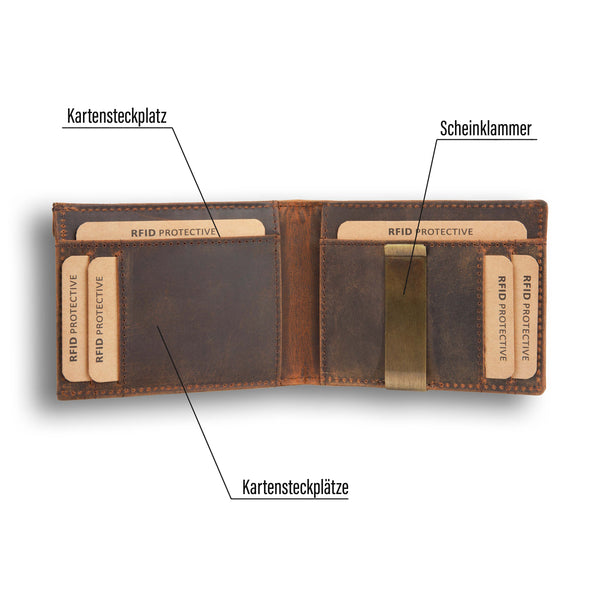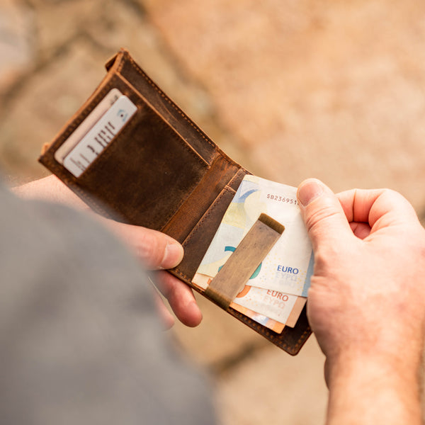 Das hochwertige Echtleder sorgt für Langlebigkeit und Charakter – mit jeder Nutzung wird die Börse schöner.