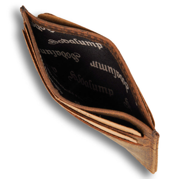 De portemonnee is speciaal op de creditcardvakken genaaid, zodat je lang kunt genieten van je hoogwaardige, handgemaakte “Hodalump”.