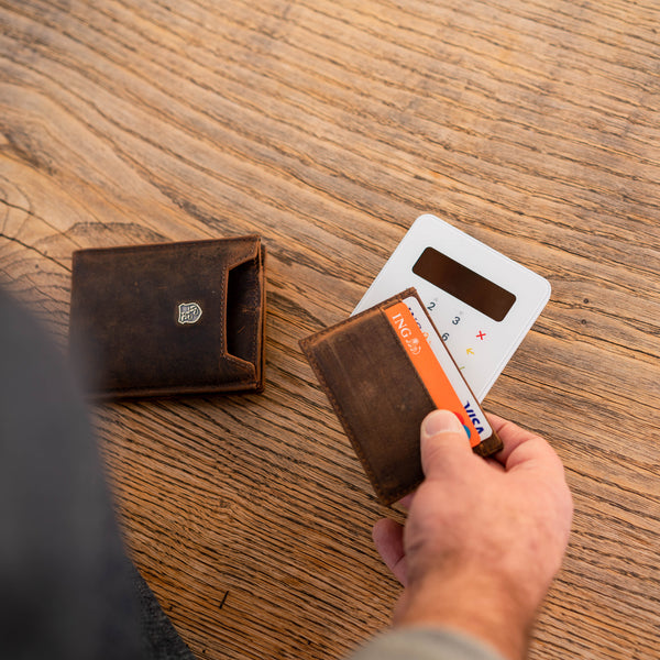 De slanke portemonnee heeft een extra creditcardhouder in de portemonnee. Dankzij deze technologie is het zoeken naar kaarten niet langer nodig. Houd hem gewoon tegen de kaartlezer en hij is al betaald!