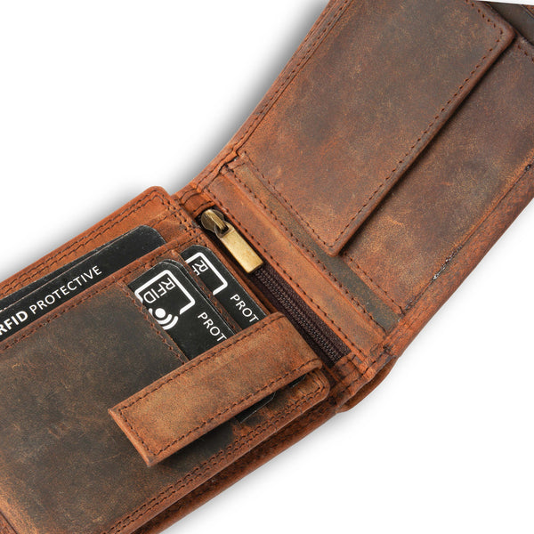 De portemonnee is gemaakt van aangenaam antislip vintage buffelleer. Het leer is natuurlijk, geolied (plantaardige olie) en geschuurd. Dit betekent dat de portemonnee na verloop van tijd donkerder wordt en een mooie patina-look krijgt.