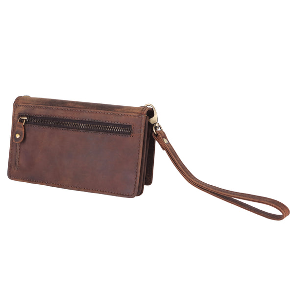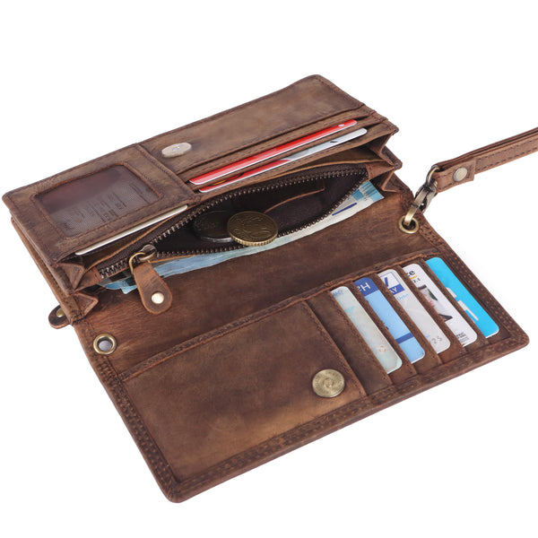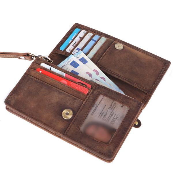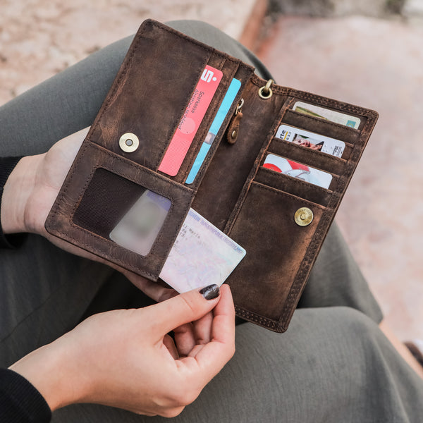 De portemonnee is gemaakt van aangenaam antislip vintage buffelleer. Het leer is natuurlijk, geolied (plantaardige olie) en geschuurd. Dit betekent dat de portemonnee na verloop van tijd donkerder wordt en een mooie patina-look krijgt.