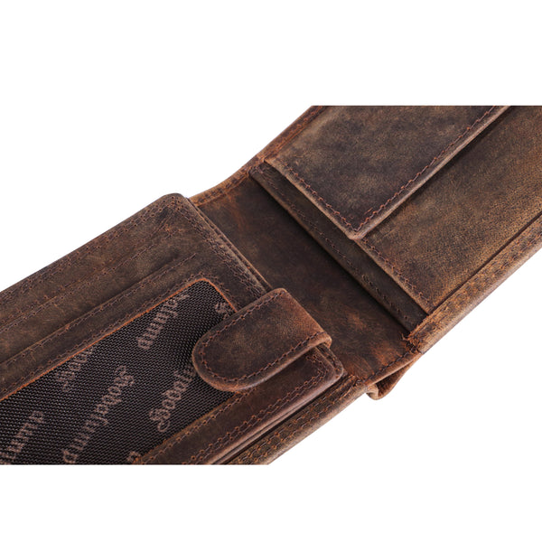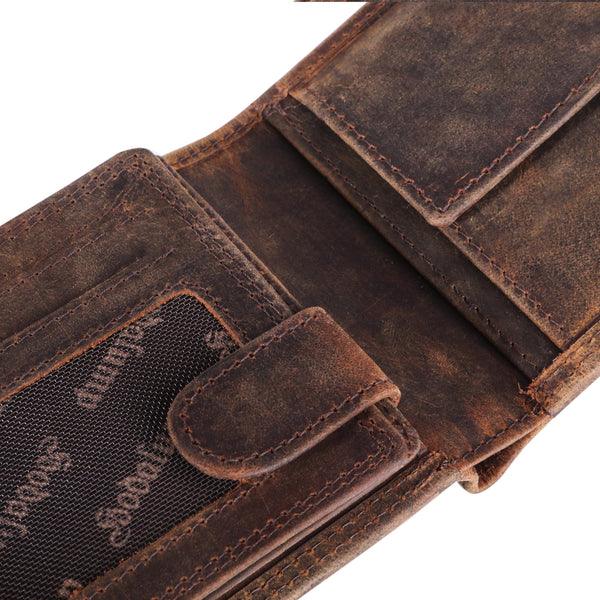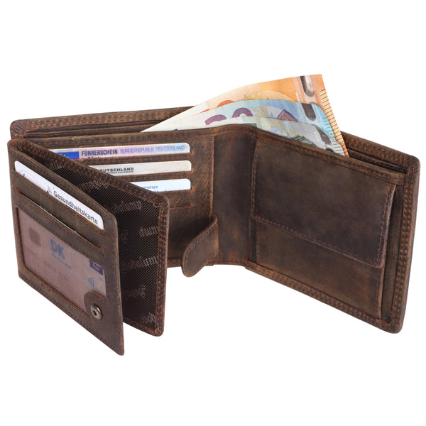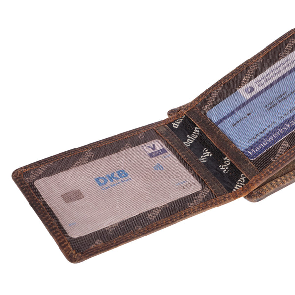 De Hodalump Classic portemonnee van bruin vintage echt leer is extreem duurzaam en robuust. Het beschikt over een muntvak, 2 biljetvakken, 8 kaartvakken, 2 zichtbare vakken. De geïntegreerde RFID-bescherming zorgt voor extra veiligheid.