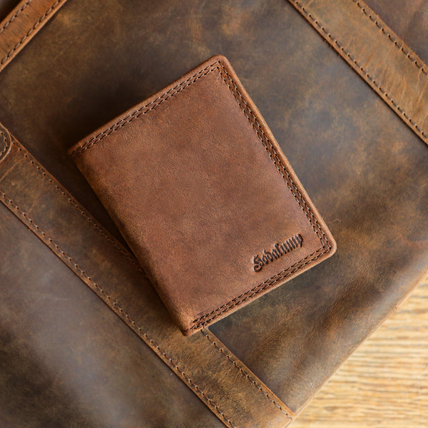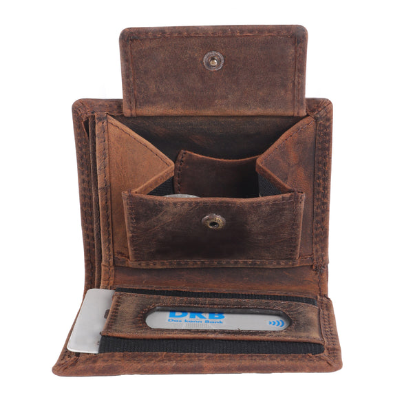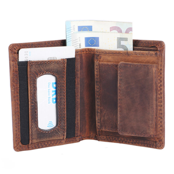 De Bayern portemonnee van bruin vintage echt leer is extreem duurzaam en robuust. Hij beschikt over een muntvak, 1 bankbiljetvak en ruimte voor 4 pasjes. De geïntegreerde RFID-bescherming zorgt voor extra veiligheid.
