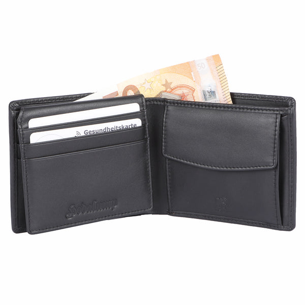 Mit mehreren Kartenfächern, einem großen Scheinfach und einem Münzfach bleibt alles sicher und ordentlich verstaut.