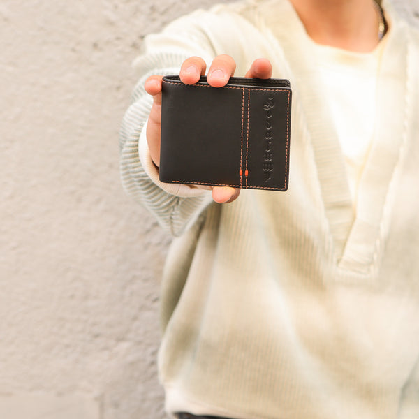 Mit der durchdachten Aufteilung bietet sie ausreichend Fächer für alle wichtigen Karten, ein großes Scheinfach und ein separates Münzfach. Das edle schwarze Leder sorgt nicht nur für ein luxuriöses Aussehen, sondern ist auch besonders strapazierfähig und entwickelt mit der Zeit eine einzigartige Patina, die die Hodalump Sim BLACK 2.0 zu einem ganz persönlichen Stück macht.