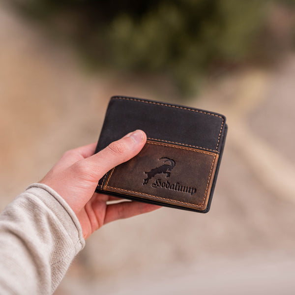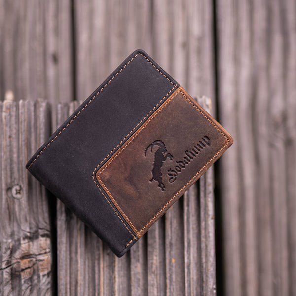 Der geprägte Steinbock auf der Vorderseite symbolisiert Standhaftigkeit & Naturverbundenheit – ein echtes Markenzeichen.