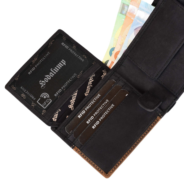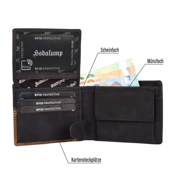 De Hodalump Classic portemonnee van bruin vintage echt leer is extreem duurzaam en robuust. Hij beschikt over een muntvak, 1 bankbiljetvak, 8 kaartvakken en een kijkvak. De geïntegreerde RFID-bescherming zorgt voor extra veiligheid.