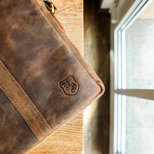 Unsere Lederwaren bestehen aus hochwertigem, robustem Büffelleder, das von Natur aus wasserabweisend ist. Leichter Regen macht ihnen nichts aus, jedoch sind sie nicht vollständig wasserdicht.
