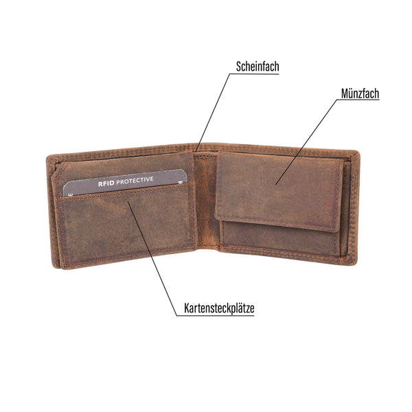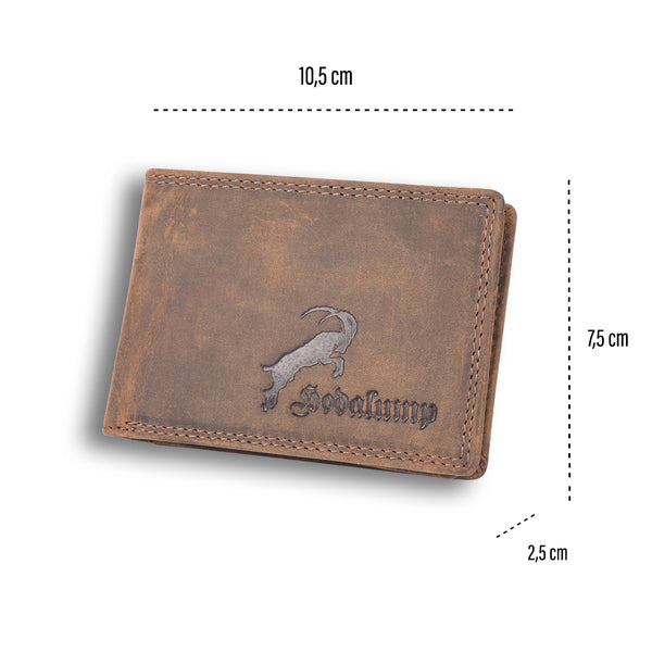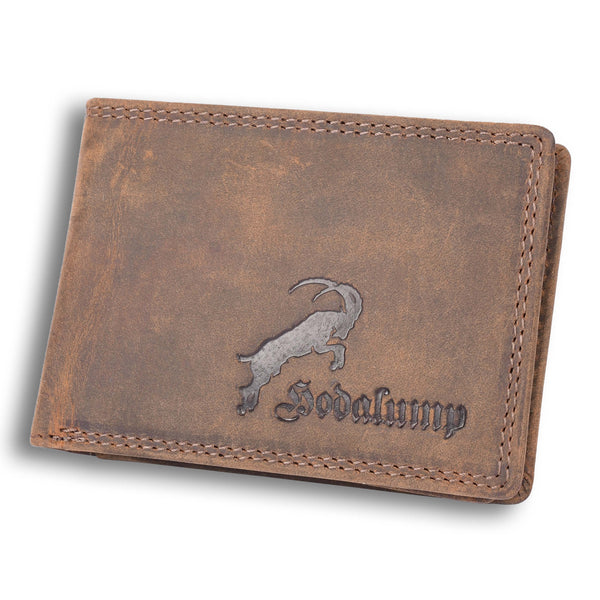 De Steinbock jeans portemonnee van bruin vintage echt leer is extreem duurzaam en robuust. Het heeft een muntvak, 1 bankbiljetvak, 3 kaartvakken, een kijkvak. De geïntegreerde RFID-bescherming zorgt voor extra veiligheid.