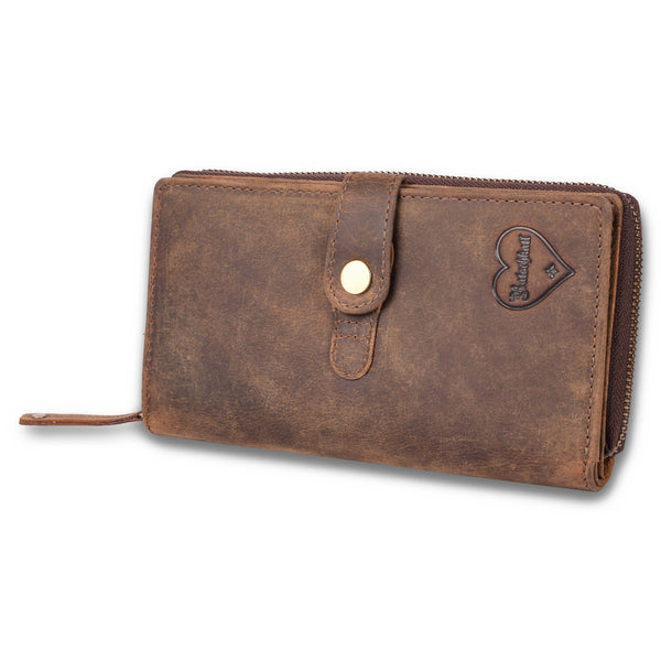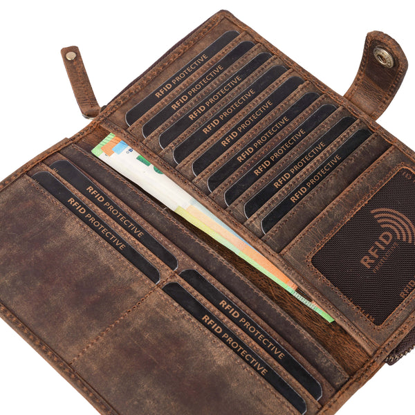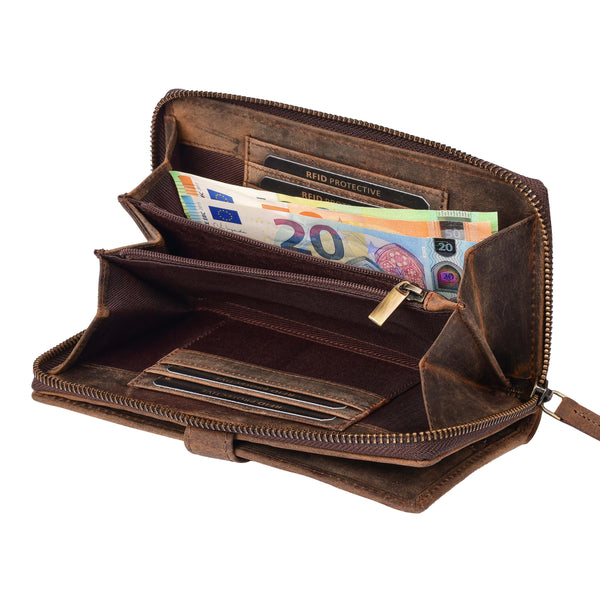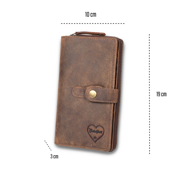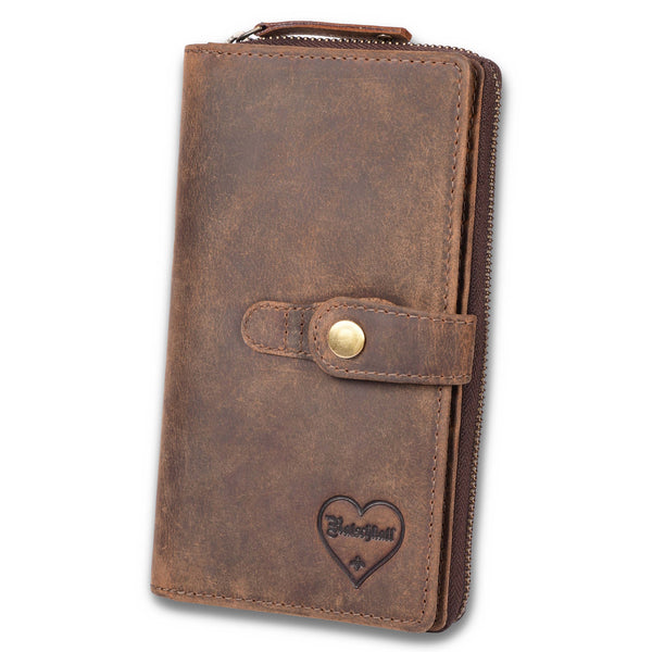 De portemonnee is gemaakt van aangenaam antislip vintage buffelleer. Het leer is natuurlijk, geolied (plantaardige olie) en geschuurd. Dit betekent dat de portemonnee na verloop van tijd donkerder wordt en een mooie patina-look krijgt.