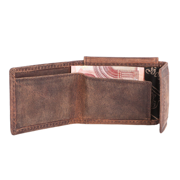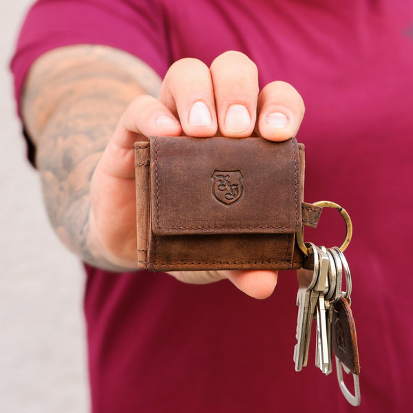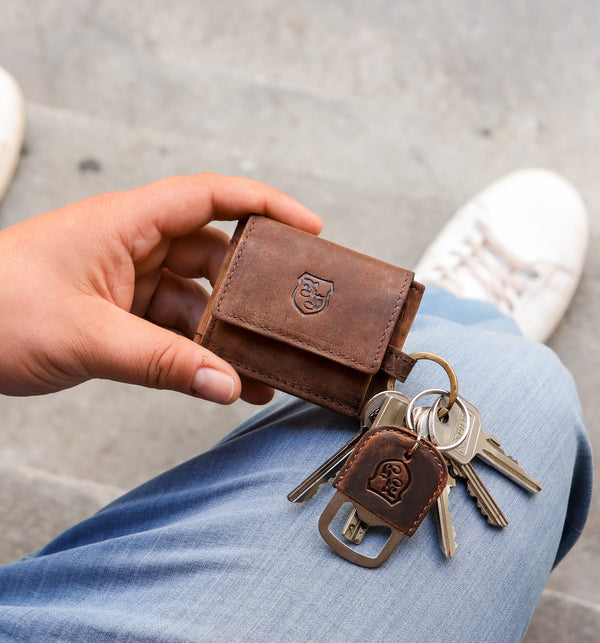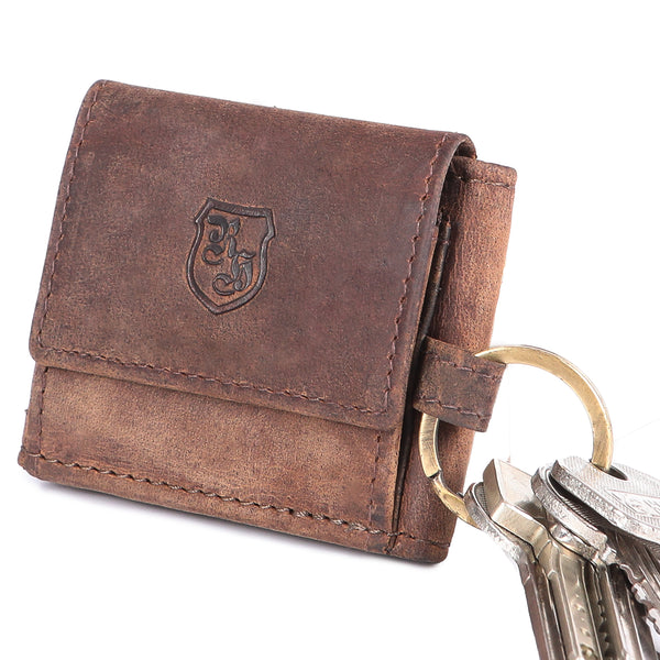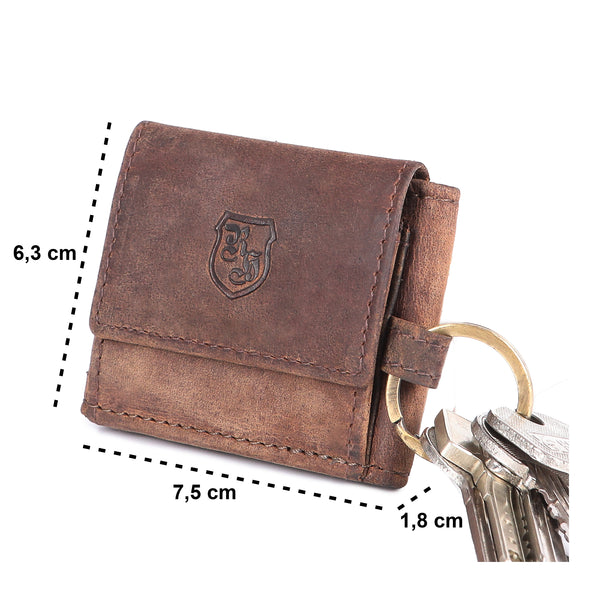 De Hodalump sleutelportefeuille van bruin vintage echt leer is extreem duurzaam en robuust. Het beschikt over een muntvakje en 1 sleutelhanger. Artikelnummer: 1092-HR