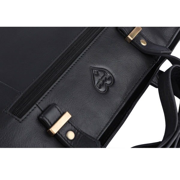 De herenschoudertas is gemaakt van aangenaam antislip buffelleer. Het leer wordt geschuurd, geolied (plantaardige olie) en geschuurd. Dit betekent dat de tas na verloop van tijd donkerder wordt en een mooie patina-look krijgt.
