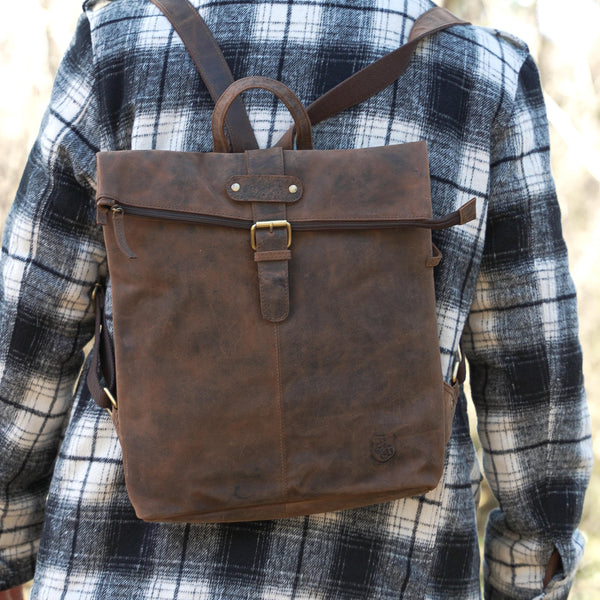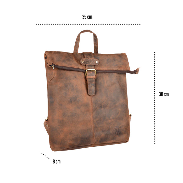 De unisex rugzak is gemaakt van aangenaam antislip vintage buffelleer. Het leer is natuurlijk, geolied (plantaardige olie) en geschuurd. Dit betekent dat de tas na verloop van tijd donkerder wordt en een mooie patina-look krijgt.