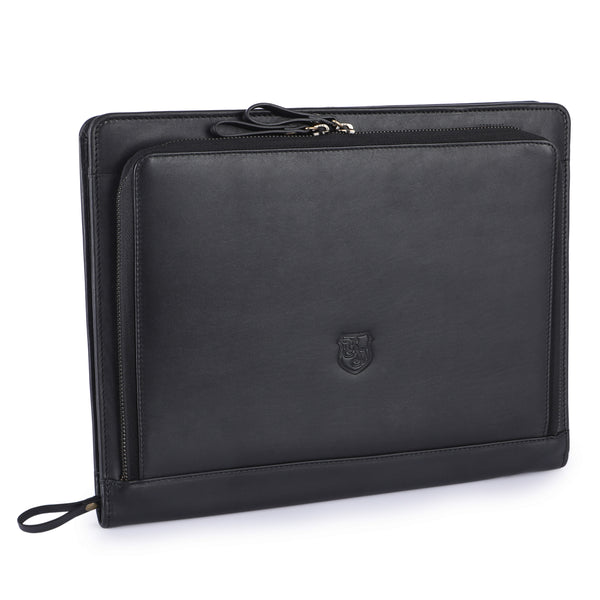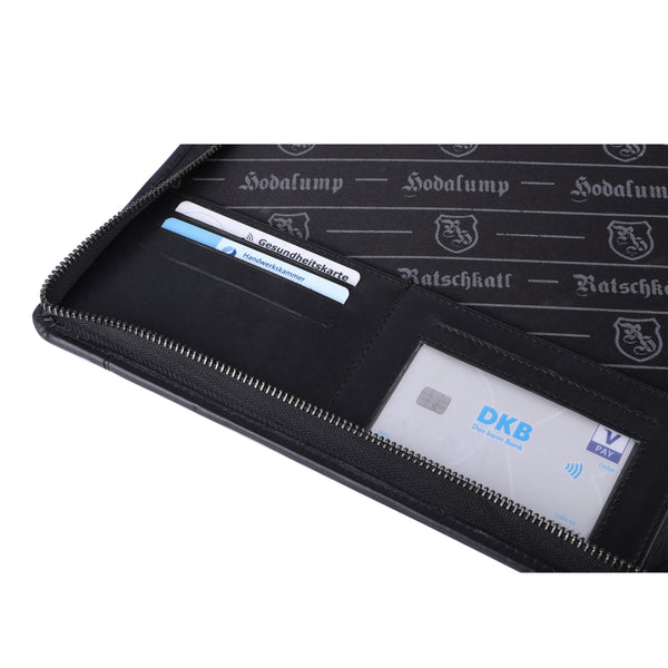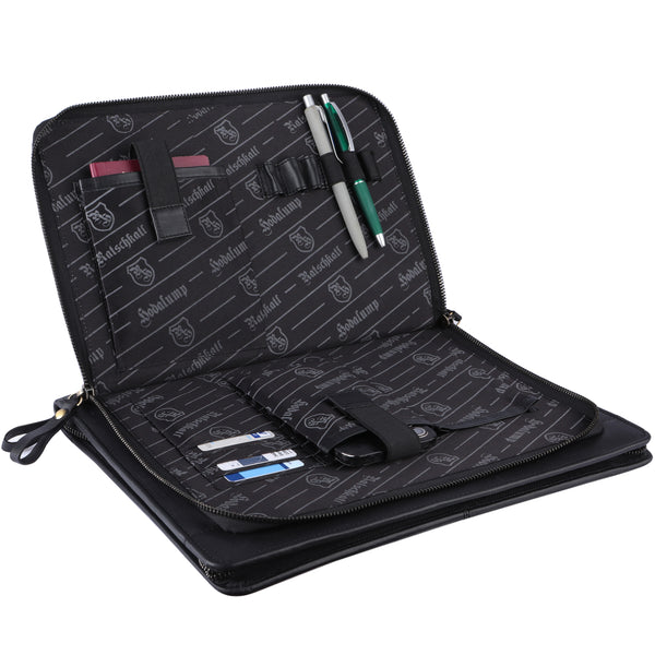 Das Echtleder ist nicht nur optisch ein Highlight, sondern schützt deine Unterlagen zuverlässig.