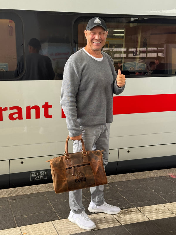 Diese handgefertigte Vintage-Tasche aus echtem Büffelleder überzeugt mit zeitlosem Design, hoher Funktionalität und außergewöhnlicher Qualität. Dank ihres großzügigen Stauraums ist sie ideal für den Alltag, das Fitnessstudio, Reisen oder als praktische Handgepäcktasche im Flugzeug.