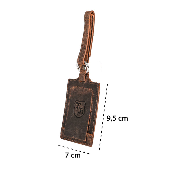 Featuring the finest cowhide leather and a customizable name tag, this pendant brings class to any travel adventure.