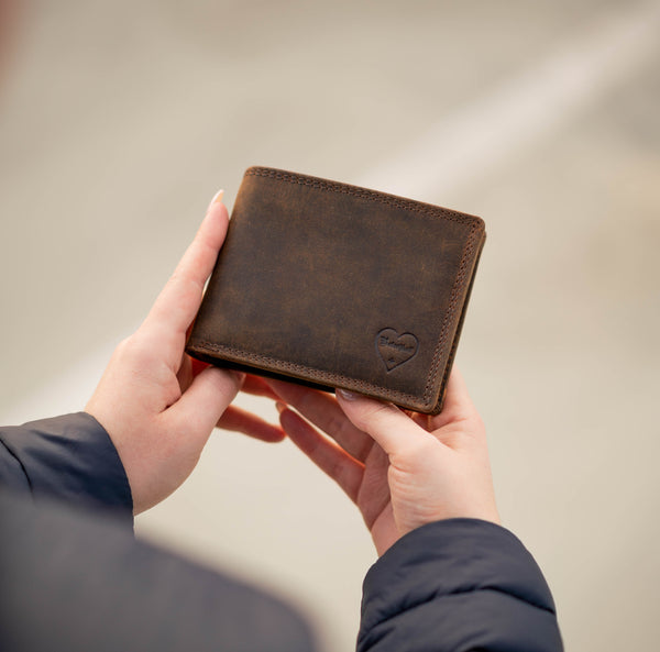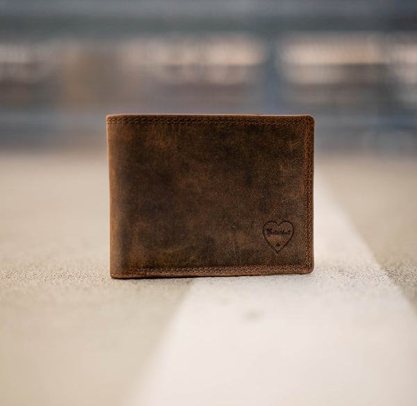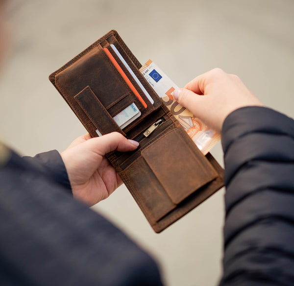 Das ist ganz einfach: Wir fertigen unsere Geldbeutel ausschließlich per Hand aus echtem vollnarbigen Büffelleder, welches als das robusteste Leder der Welt gilt. Zusätzlich versiegeln wir durch die besondere Schleiftechnik die Oberfläche der Geldbeutel. Während der Verwendung unserer Geldbeutel entsteht dadurch eine lebendige Patina die den individuellen Charakter dieses ausdrucksstarken Leders unterstreicht.