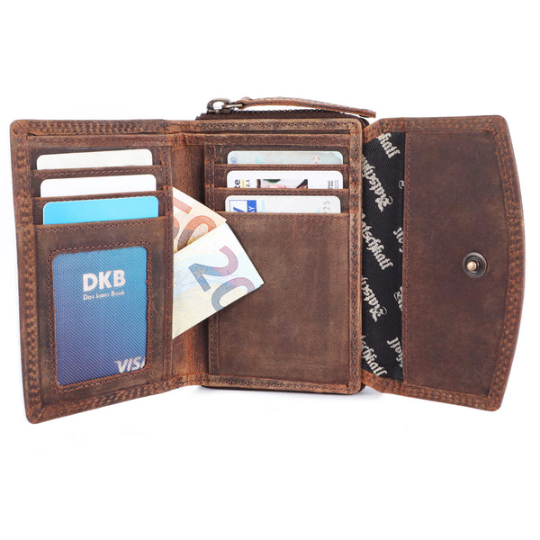 Das ist ganz einfach: Wir fertigen unsere Geldbeutel ausschließlich per Hand aus echtem vollnarbigen Büffelleder, welches als das robusteste Leder der Welt gilt. Zusätzlich versiegeln wir durch die besondere Schleiftechnik die Oberfläche der Geldbeutel. Während der Verwendung unserer Geldbeutel entsteht dadurch eine lebendige Patina die den individuellen Charakter dieses ausdrucksstarken Leders unterstreicht.