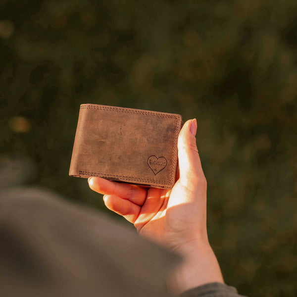 Das ist ganz einfach: Wir fertigen unsere Geldbeutel ausschließlich per Hand aus echtem vollnarbigen Büffelleder, welches als das robusteste Leder der Welt gilt. Zusätzlich versiegeln wir durch die besondere Schleiftechnik die Oberfläche der Geldbeutel. Während der Verwendung unserer Geldbeutel entsteht dadurch eine lebendige Patina die den individuellen Charakter dieses ausdrucksstarken Leders unterstreicht.