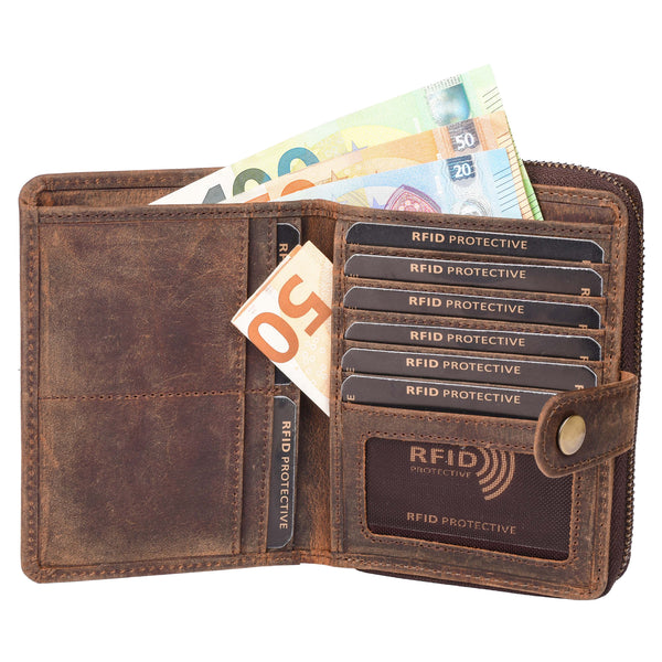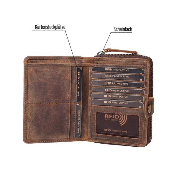 Unsere Lederwaren bestehen aus hochwertigem, robustem Büffelleder, das von Natur aus wasserabweisend ist. Leichter Regen macht ihnen nichts aus, jedoch sind sie nicht vollständig wasserdicht.