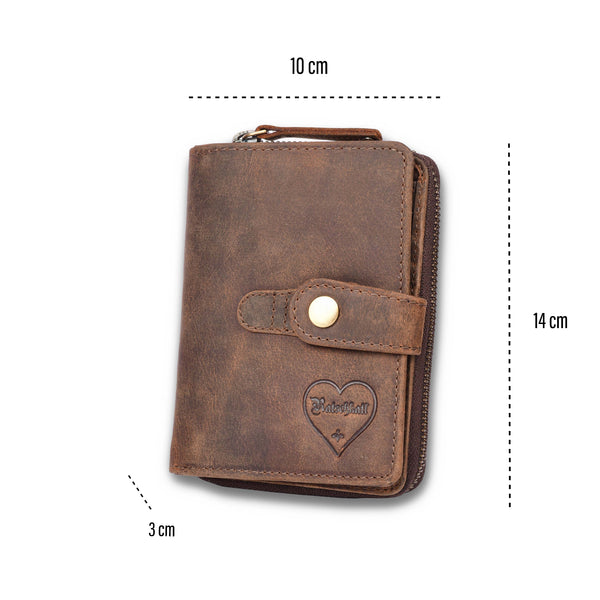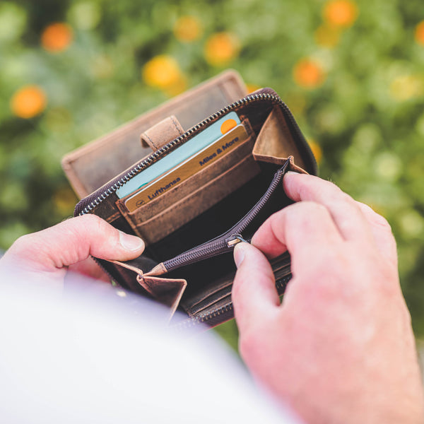 Das ist ganz einfach: Wir fertigen unsere Geldbeutel ausschließlich per Hand aus echtem vollnarbigen Büffelleder, welches als das robusteste Leder der Welt gilt. Zusätzlich versiegeln wir durch die besondere Schleiftechnik die Oberfläche der Geldbeutel. Während der Verwendung unserer Geldbeutel entsteht dadurch eine lebendige Patina die den individuellen Charakter dieses ausdrucksstarken Leders unterstreicht.